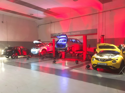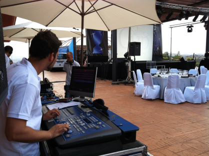 – Iluminación: focos de led, recortes, fresnel, PC, cabezas móviles, cañones de seguimiento, láser, máquina de humo.