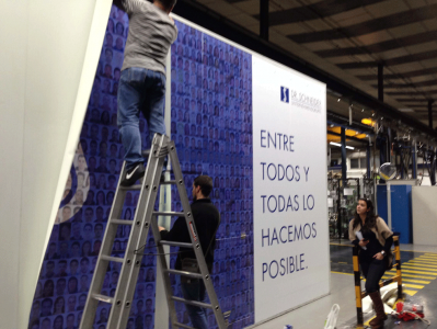 Realizamos el montaje e instalación de todos los trabajos que imprimimos utilizando, si es necesario, gruas, andamios, estructuras perimetrales, bridas con equipos homologados, así como, personal cualificado equipado y con los cursos de prevención de riesgos laborales vigentes.